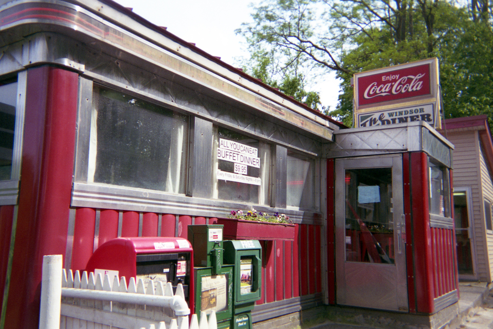 More than any other edifice from the mean streets of the early ‘90s, I remember the Windsor Diner’s chrome and red plastic shine, abandoned in the quiet stretch between the Cumby’s parking lot stoners and Pizza Chef’s hazy pool sharks and rat-tailed Ninja Turtle wastoids. As I peeked through the foyer at the wooden booths and the dark, empty glass cases behind the counter, I’d ask my Dad if we could go there when it re-opened. He’d shrug and assure me that we’d go someday, if it ever opened, and continue down the cracked sidewalk, leaving me to fixate on this eccentric, squat building. When, I wondered, would I have my diner? Why was it closed to begin with?